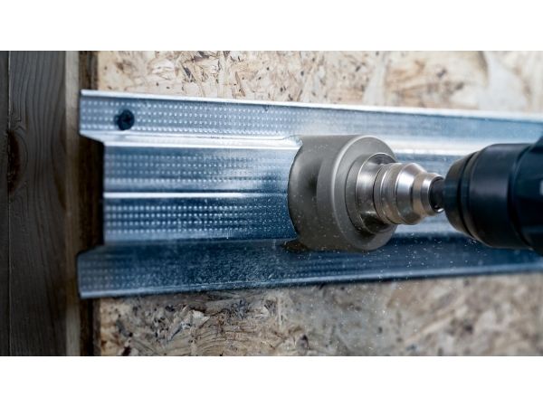 Lang levetid ved skæring af huller i forskellige materialer! Højhastighedsstål med 8 % kobolt for lang levetid og fremragende ydeevne til elektrikere og VVS-installatører, der arbejder i den indvendige udbygning, er hulsave af uvurderlig værdi til installation af rør, el-tavler og indbygningslamper. Ideelt set har du kun en slags hulsav til alle de udfordringer og materialer, som den indvendige udbygning medfører. Løsningen: PRO multi-materialet. PRO multi-materiale-hulsav har en forbedret tandform til hurtige og glatte snit. HSS-legering med koboltindhold sørger for lang levetid. Den muliggør effektiv hulsavning i stålbeklædninger og vægge i mørtelfrit elementbyggeri. Med Power Change Plus kan du uden videre skifte hulsave og forbor hurtigere og fjerne borekerner.