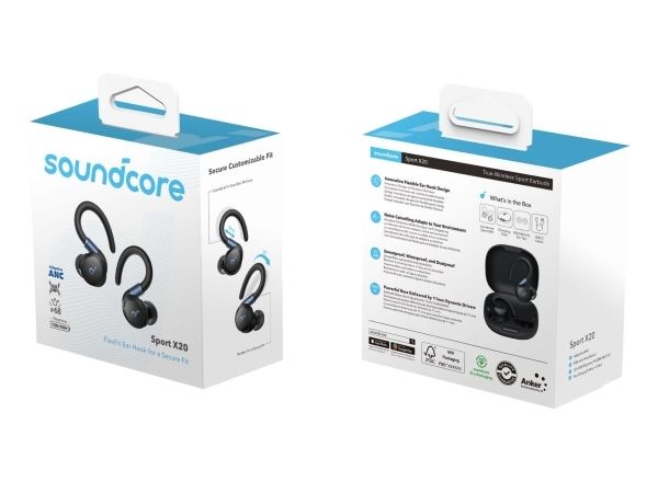 [OUTLET] - Soundcore Sport X20, Trådløs, Samtale/Musikk/Sport/Hverdag, Hodesett, Sort