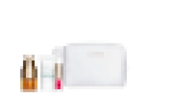 Set Clarins: Double Serum, Anti-Age, Eye Serum, 20 ml + Cryo-Flash, Firming & Radiance, Cream Mask, For Face, 15 ml + Lip Confort, Lip Oil, 04, 1.4 ml + Clarins, Zippered, GWP Textile Pouch, White
