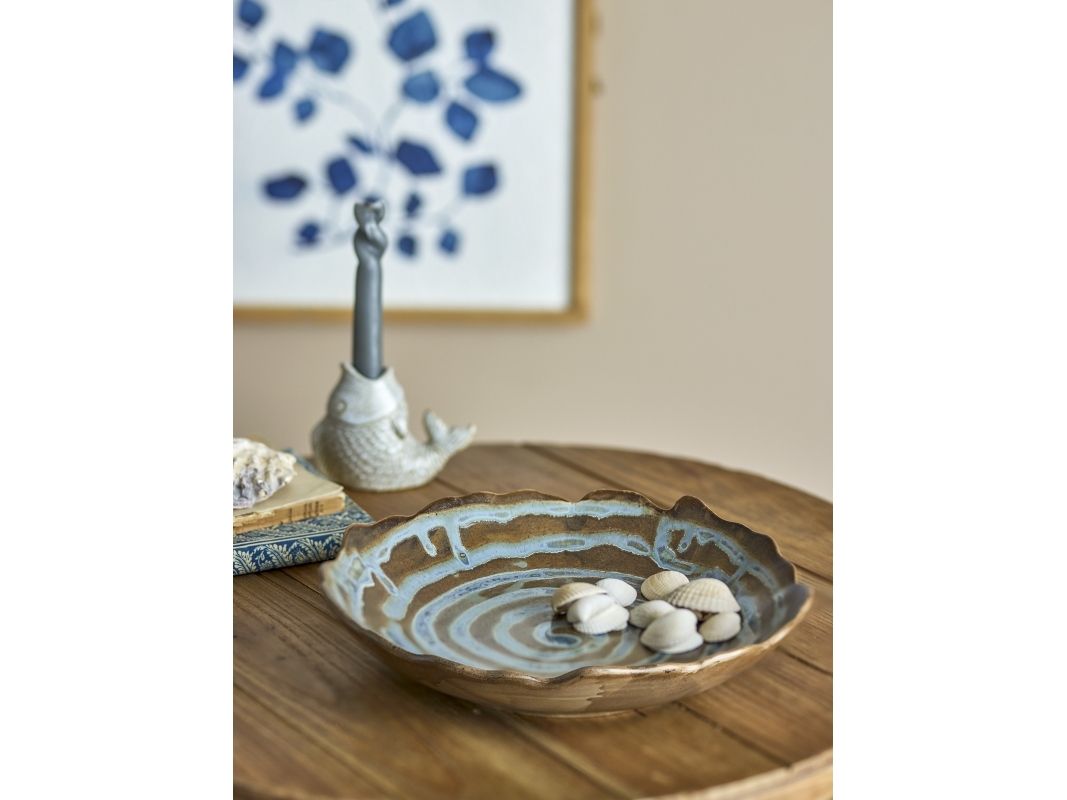 Marjorie Fadet fra Creative Collection er lavet af stentøj med håndmalet spiraldekoration og ujævne kanter. Den reaktive glasur skaber et levende farvespil og gør hvert fad unikt.