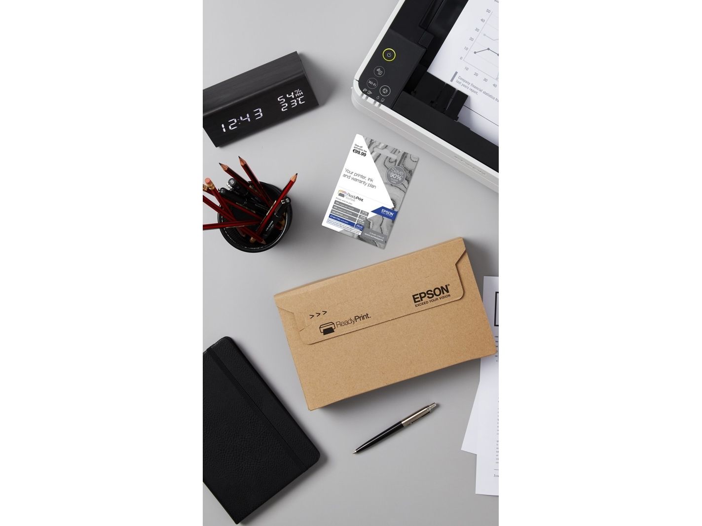 Nyt fordelene ved mobil utskrift og store besparelser med denne slitesterke EcoTank med påfyllbar blekkbeholder. Den er rask og energieffektiv fordi den ikke trenger å varmes opp. Bruk tiden og ressursene dine mer effektivt med Wi-Fi, dobbeltsidig utskrift, 250-arksskuff og PrecisionCore-skrivehode.