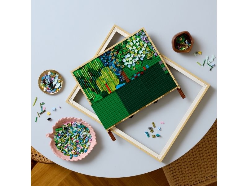 IMPRESSIONIST VEGGKUNST – fordyp deg i en gøyal modell som gjør kreativt bruk av velkjente LEGO® elementer, inkludert sommerfugler, kirsebær, bananer, sverd og skjold, for å gjenskape Monets mesterverk