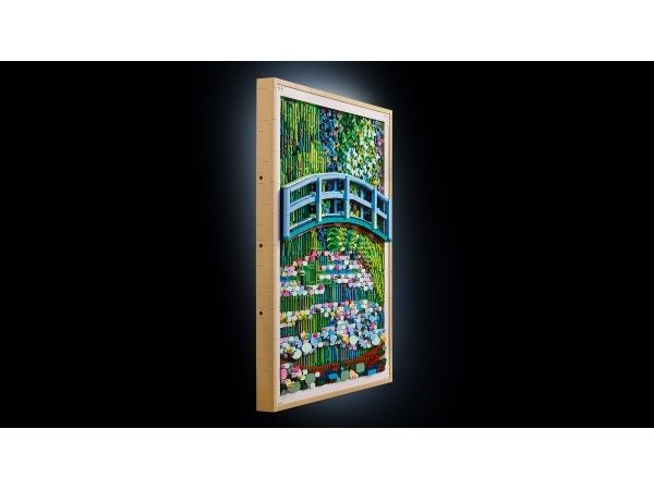 STILL UT ET BERØMT MALERI – denne klossebygde versjonen av Monets vannliljemaleri har et opphengselement bakpå, slik at du kan henge det opp og spre farge, natur og ro i rommet