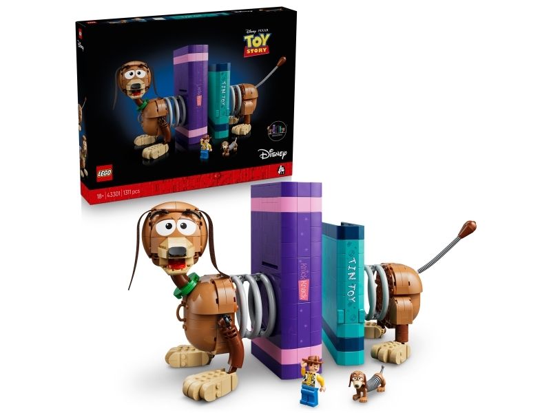 2. DEKORATIVE BOKSTØTTER – dette Toy Story Slinky Dog bokstøtter (43301) byggesettet med dachshund hedrer LEGO® | Disney og Pixar-figuren med to bøker, to minifigurer og mer