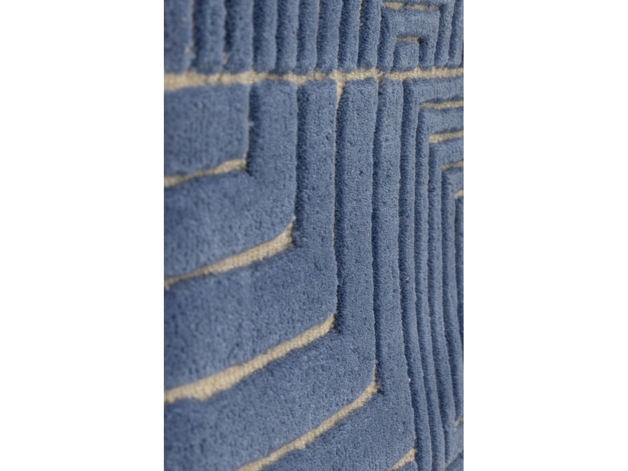 Velva Vægdekorationen fra Bloomingville er udført i vævet uld med en tuftet overflade og et dybblåt geometrisk mønster på beige bund. Den kan hænges på væggen eller bruges som tæppe. Produktet er fremstillet af naturlige materialer, så der kan forekomme farvevariationer, og hvert stykke er unikt.