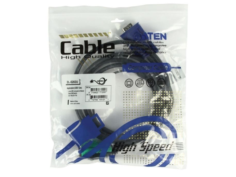 ATEN 2L-5202U - Tastatur / video / musekabel (KVM) - USB, HD-15 (VGA) (hann) til USB, HD-15 (VGA) (hann) - 1.8 m - for KVM on the NET CS1708, CS1716; Master View max CS-1716; MasterView USB KVM Switch CS-1708