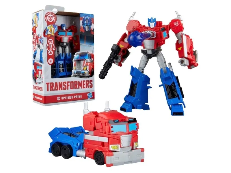 2-i-1 Transformers Prime Changers Optimus Prime-leken er klar for action! Denne 12,5 cm Transformers-actionfiguren for gutter og jenter forvandles fra robotmodus til lastebilmodus i 13 enkle trinn. Fest den medfølgende blasteren og Energon sprengeffekttilbehøret for kule actionposeringer og fantasifull lek. Se etter flere Prime Changers Transformers-figurer basert på favorittkarakterer som Bumblebee og Megatron (hver selges separat, med forbehold om tilgjengelighet). Optimus Prime-figurer som denne er flotte gaver for barn fra 6 år og oppover som elsker puslespill, fikleleker eller lastebilleker. TRANSFORMERS og HASBRO og alle tilhørende varemerker og logoer er varemerker for Hasbro, Inc.