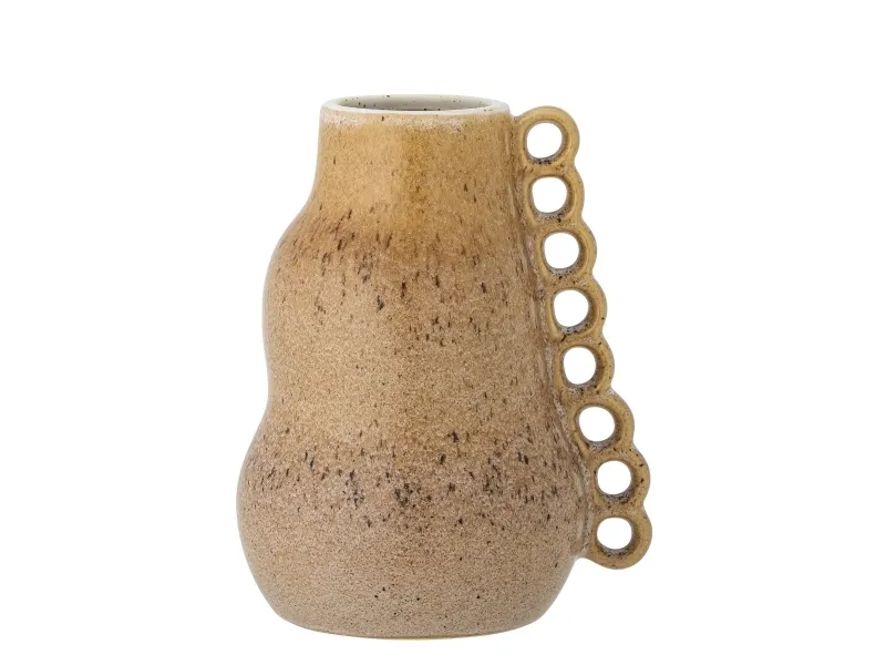 Souri Vasen fra Creative Collection er lavet af stentøj i et med en reaktiv glasur i brune naturfarver. Dekoreret med små løkker ned langs siden. Hver vase vil variere og være unik, da den er dekoreret i hånden.