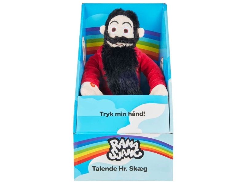 Hr. Skæg er kendt fra DR Ramasjang som den søde og venlige karakter, der altid tror det bedste om andre. Nu kan børn få ham som en blød plysven, der spreder glæde med en række positive og opløftende lyde – helt i tråd med hans varme personlighed fra TV.