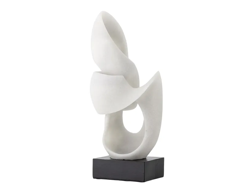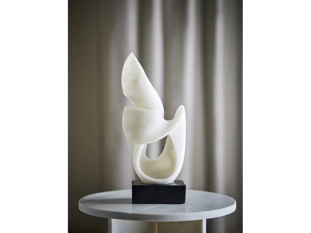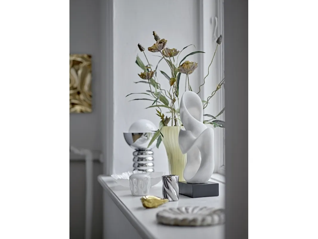 Alistair Deko fra Bloomingville har en smuk, svungen form og er lavet af polyresin med en mat overflade i en hvid nuance. Dekorationen står på en sort fod og kan bruges som en kunstnerisk detalje på gulvet, på et sidebord eller i en reol.