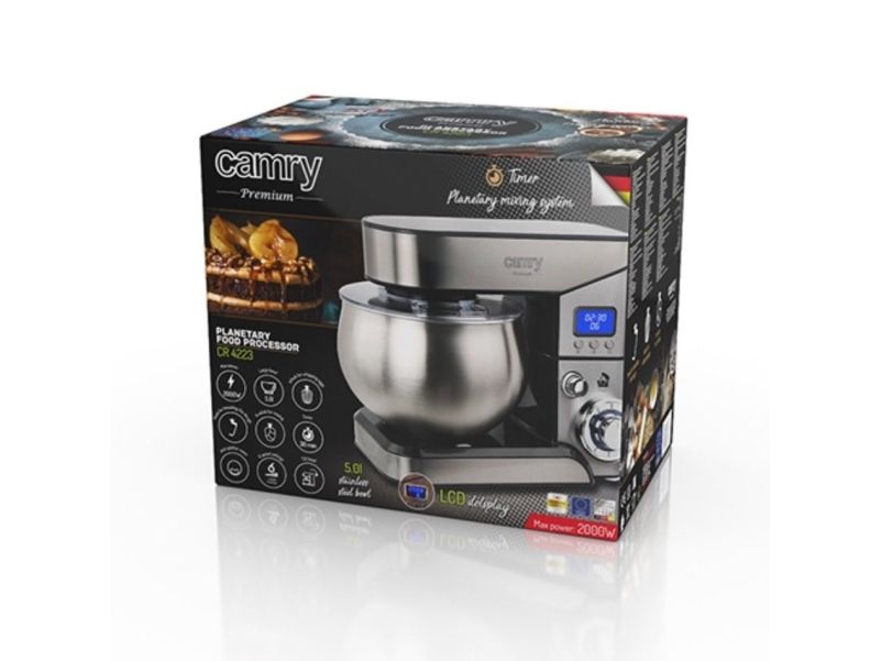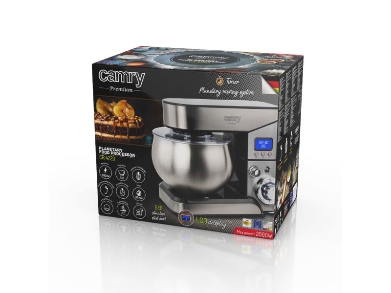 [OUTLET] - Camry | CR 4223 | Planetarisk foodprosessor | Antall hastigheter 6 | Skålkapasitet 5 L | 2000 W | Sølv