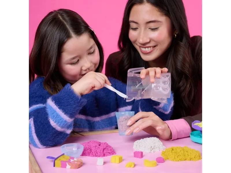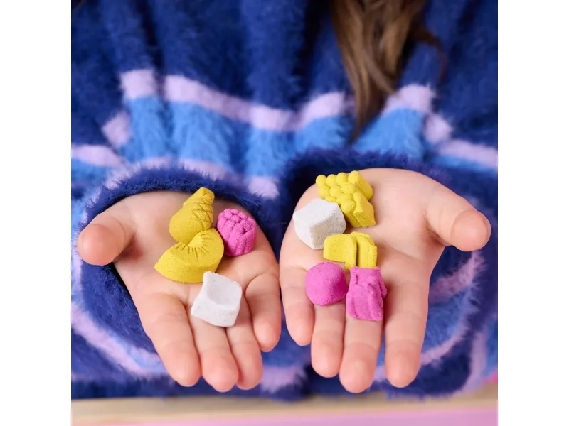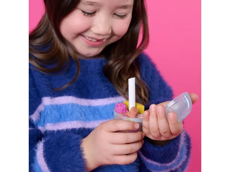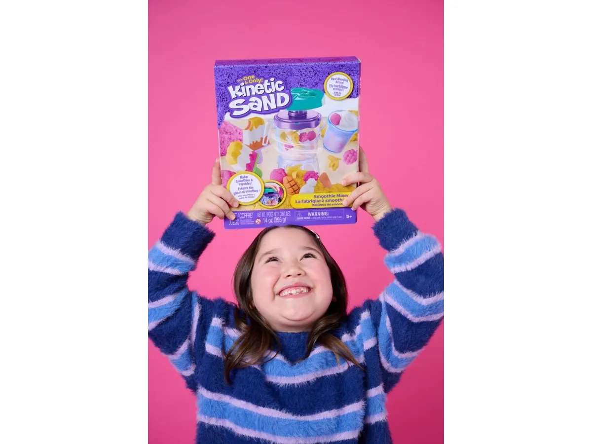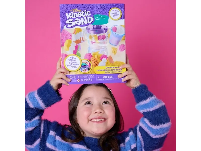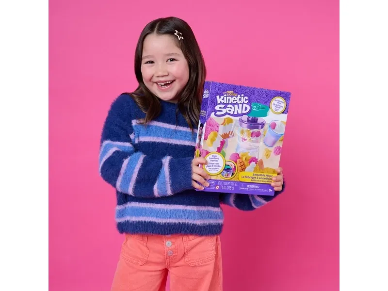 Lag fruktige godbiter med Kinetic Sand Smoothie Mixer. Med dette morsomme settet kan barn forme, stable, blande, skjære og klemme sammen sine egne smoothies og ispinner – og la kreativiteten blomstre! Barna får oppleve ekte blandingsaction når de former frukt og topping på lokket, slipper ingredienser i krukken og presser for å mikse – akkurat som en ekte mikser. Med 400 g lekesand kan du “helle” smoothieskaperverkene i koppen for servering, eller fylle ispinneskjemaet med lag av fargerik sand. Kinetic Sand fremmer finmotorikk og sensoriske ferdigheter, og passer både for individuell og gruppelek – og oppmuntrer til sosialt samspill. En må-ha-gave til bursdager, høytider eller enhver anledning – Kinetic Sand er et engasjerende alternativ til modelleire og byggesett. Kinetic Sand-sett kan også brukes som læringsressurs i klasserommet, som Montessori-leker eller for lek hjemme. The One and Only Kinetic Sand er laget av naturlig sand, tørker aldri ut og fester seg bare til seg selv – for enkel opprydding. Dypp hendene i sanden med flere farger av Kinetic Sand og oppdag flere lekesett (selges separat). Opplev ekte blandingsaction med Kinetic Sand Smoothie Mixer.