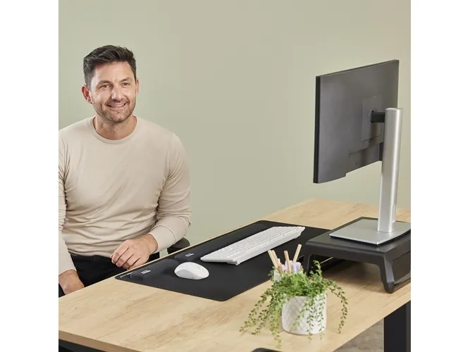 Experience all-day comfort and enhanced support with the Fellowes Breyta™ Palm Rest. Designed to conform to your wrist, it helps relieve pressure and fatigue while typing and mousing, making it ideal for long work sessions. The soft-touch, anti-dust coated surface delivers a premium finish and smooth mousing experience. Made with Microban® antibacterial technology, it offers continuous hygienic protection, perfect for shared or high-use environments. Its lightweight, compact design makes it easy to carry, supporting hybrid working without compromising on comfort. Fully recyclable through the Fellowes takeback scheme*. The Breyta™ Palm Rest is a practical addition to any workspace.Fellowes Wrist Rest Breyta Palm Rest with Antibacterial Protection Ergonomic Wrist Support Black. Product colour: Black, Material: Silicone, Certification: EN ISO 9241-5. Width: 60 mm, Depth: 180 mm, Height: 17.5 mm. Quantity per pack: 1 pc(s)