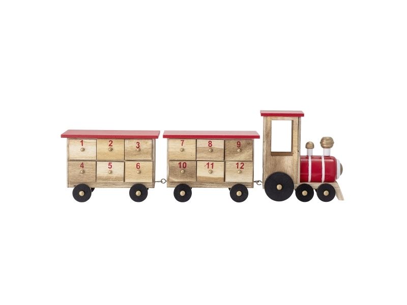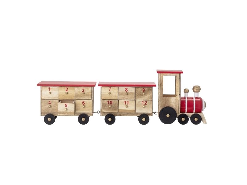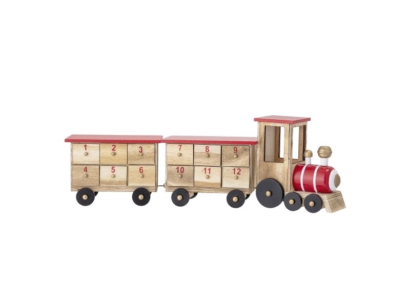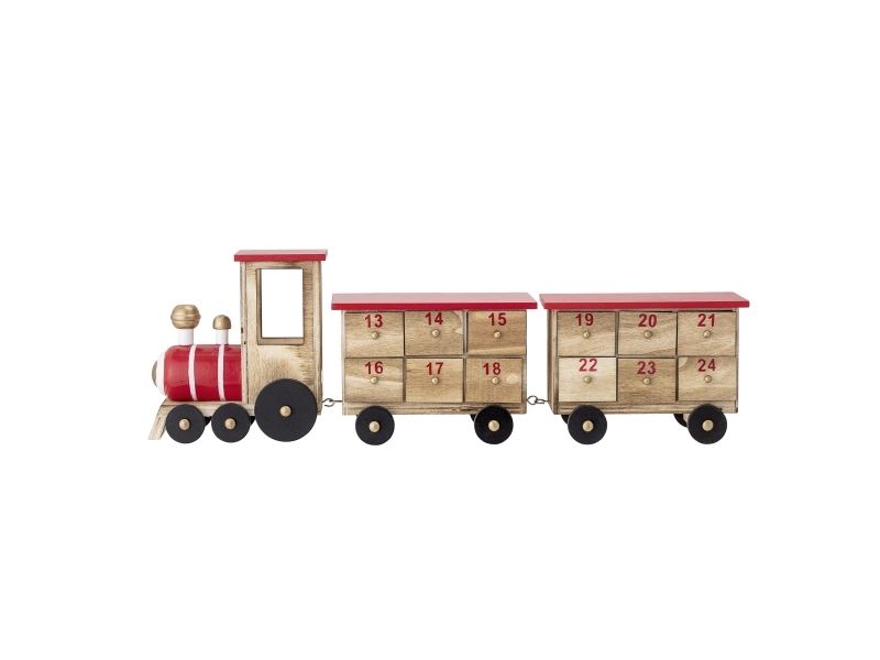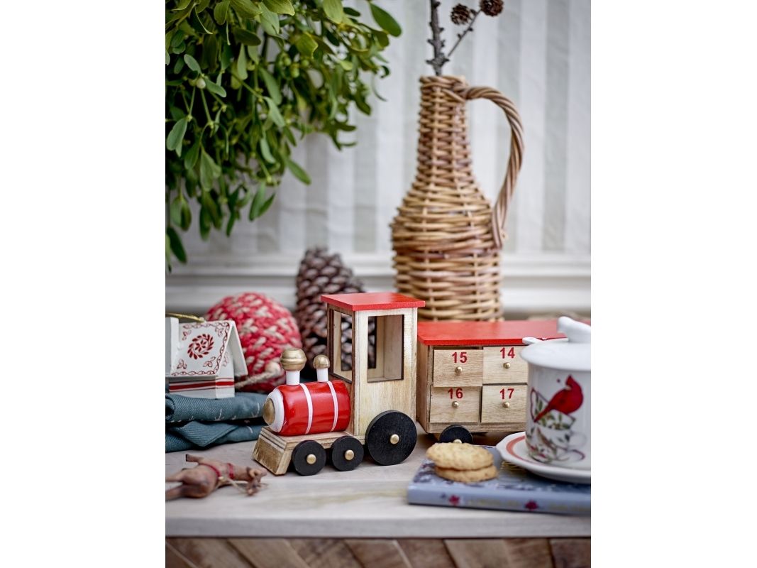 Grunk Kalenderen by Bloomingville er ikke kun en sød juledekoration, men også en kilde til små daglige overraskelser. Med tal på hver af kasserne, giver den dig mulighed for at tælle ned til den 24. december, og gør hele julemåneden spændende med en lille overraskelse hver dag. Toget er fremstillet i kejsertræ og malet i julens traditionelle farver.