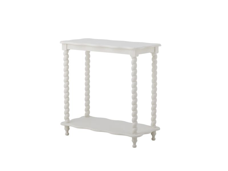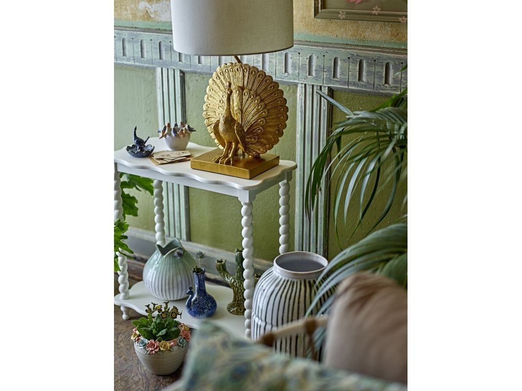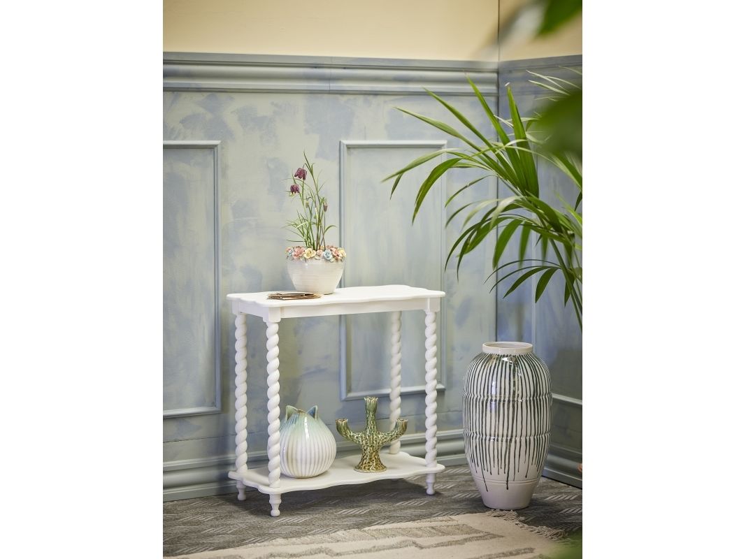 Bia Konsolbordet fra Creative Collection er lavet af MDF og fyrretræ med bløde, bølgede kanter og en ekstra hylde nederst. Den hvide overflade og de afrundede former giver bordet et let og klassisk udtryk – ideelt i entré eller stue.