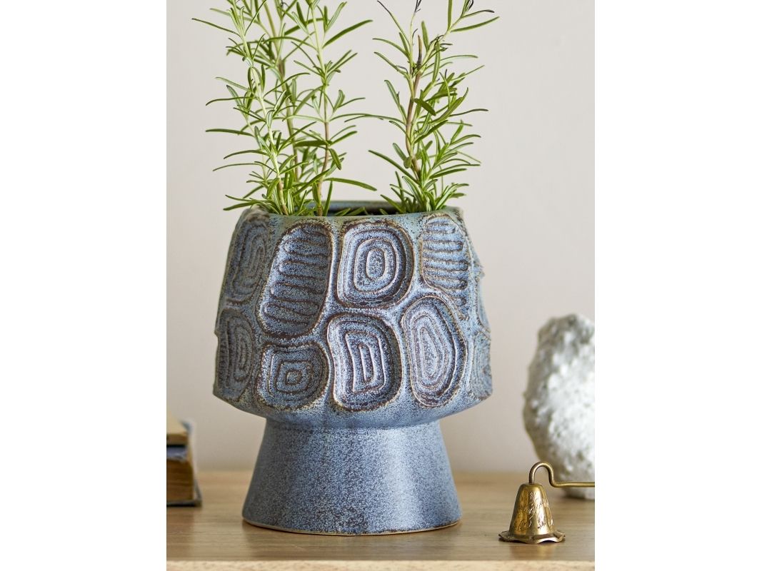 Clarke Urtepotteskjuleren fra Creative Collection er en elegant stentøjskrukke med et unikt og kunstnerisk mønster, der giver et smukt tekstureret look. Med sin afdæmpede blå farvetone og særprægede form fungerer Clarke Urtepotteskjuler både som en praktisk planteholder og som et dekorativt element. Perfekt til at fremhæve dine yndlingsplanter og tilføje et naturligt touch til hjemmet.