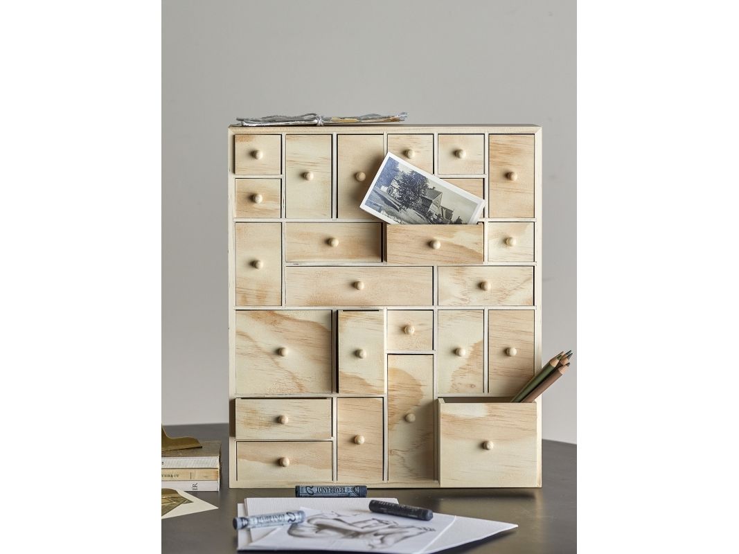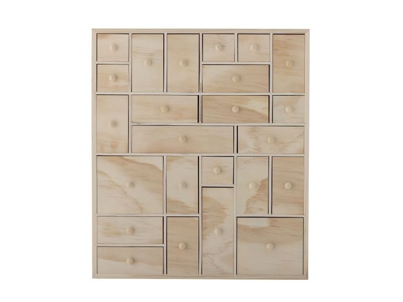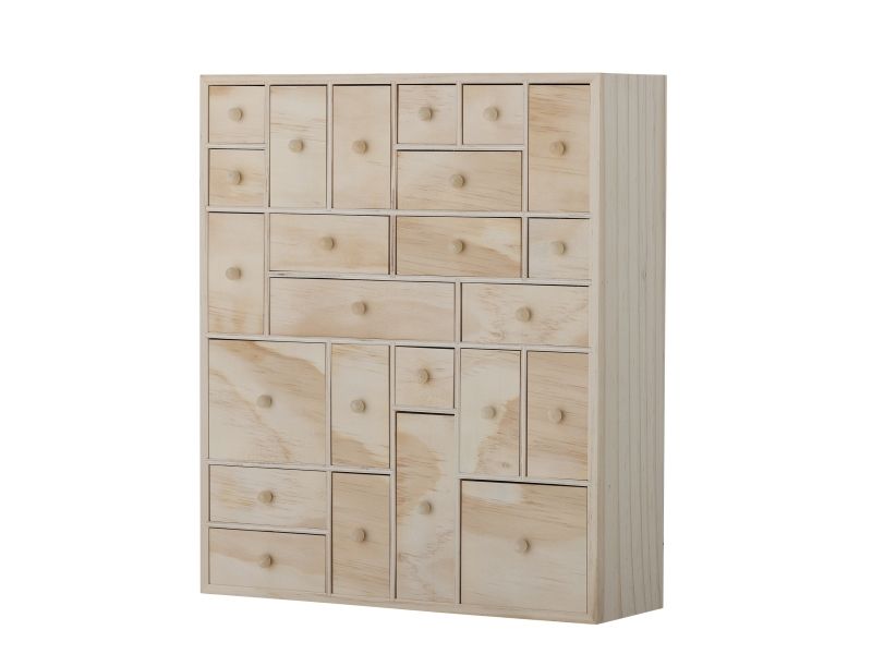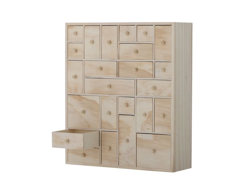 Valery Opbevaringskassen fra Bloomingville er fremstillet af FSC-certificeret krydsfiner og fyrretræ i en lys farve, som giver et naturligt og let udseende. Med sine mange små skuffer er denne opbevaringskasse perfekt til at opbevare smykker, kontorartikler eller kreativt tilbehør. Brug den også på børneværelset, som en fin opbevaringsløsning. Her indbyder de mange skuffer til opdagelse og leg.