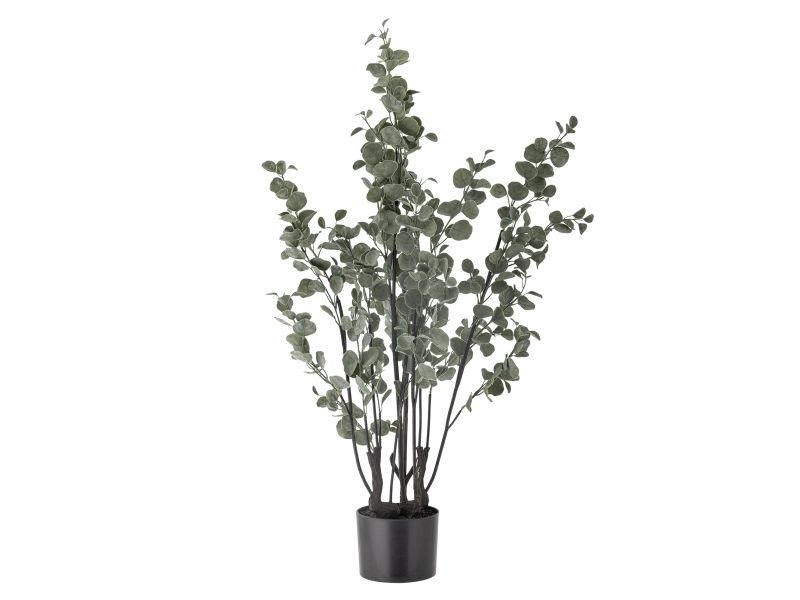 Eucalyptus Planten fra Bloomingville er essensen af enkelthed og naturlig elegance. Den tilfører et delikat touch af grønt til ethvert rum og præsenterer en diskret charme med sit frodige og realistiske udseende. Den vedligeholdelsesfri plante kommer med en sort potte, klar til at blive sat i din foretrukne urtepotteskjuler, som kan fremhæve dens skønhed og supplere din indretning. Nyd synet af grønne blade året rundt uden besværet med pasning. Form stilkene/grenene før brug, for at frembringe plantens naturlige udseende og tilpasse den til din personlige indretning. Kun til dekoration, bør ikke udsættes for vand.