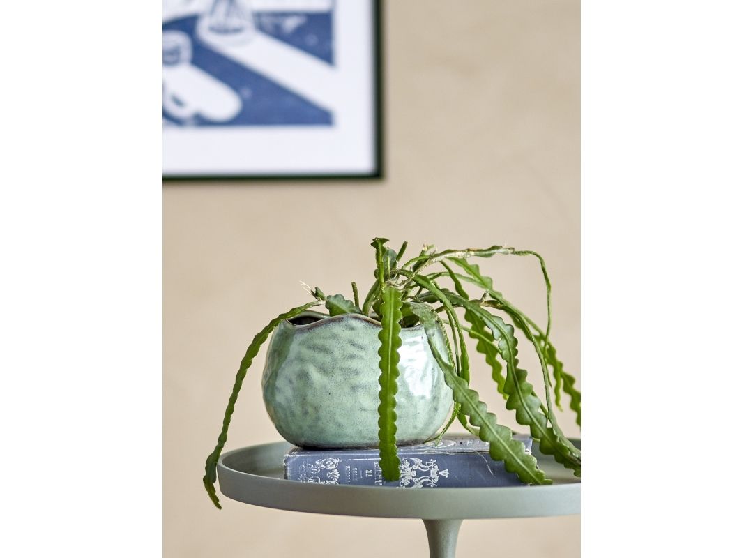 Pennie Urtepotteskjuleren fra Bloomingville er lavet i stentøj i en organisk form og er prydet med en skinnende lysegrøn glasur. På grund af glasurens natur kan der forekomme små farvevariationer.