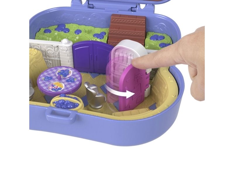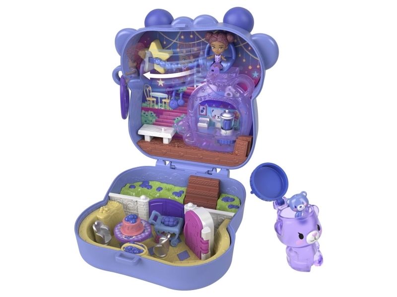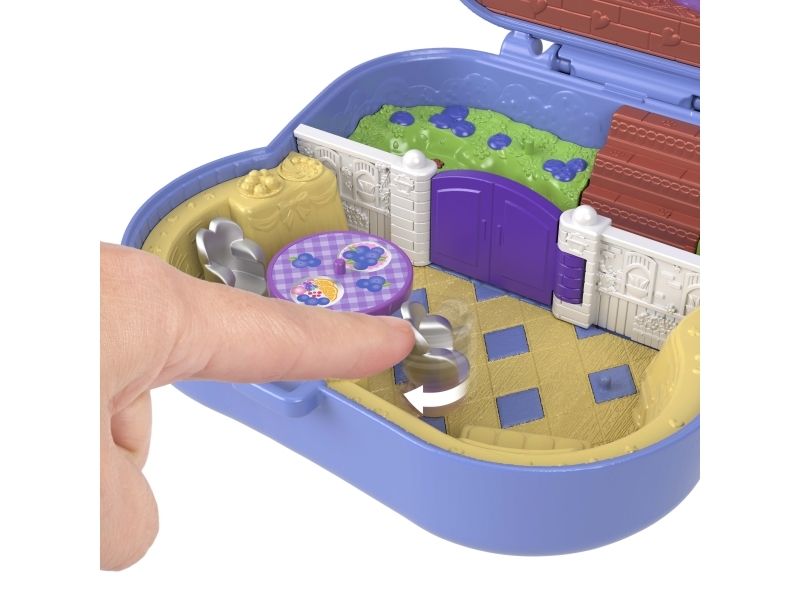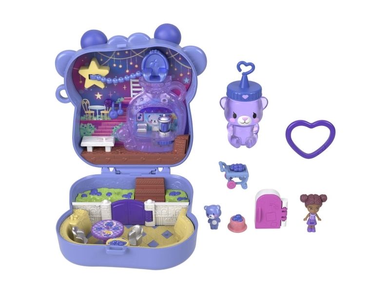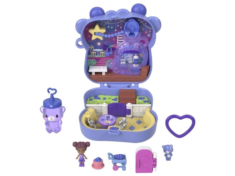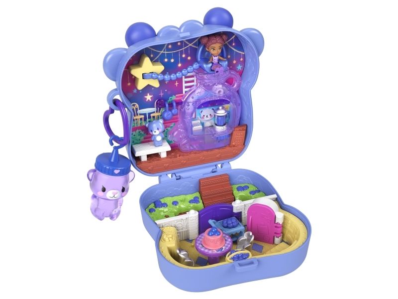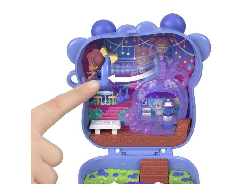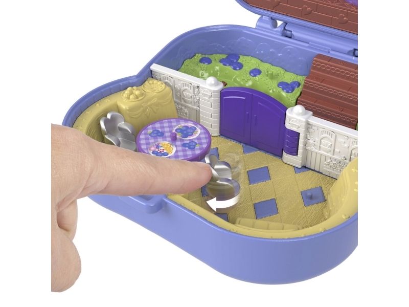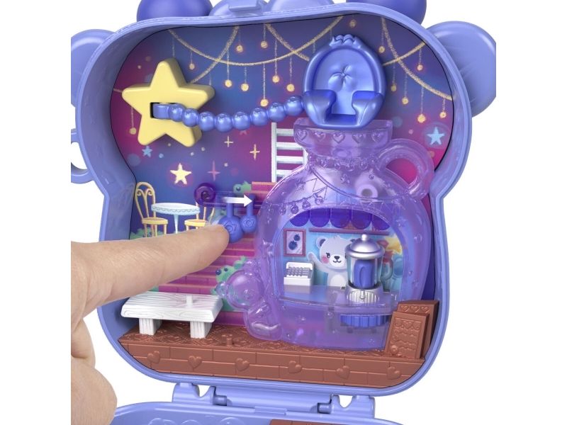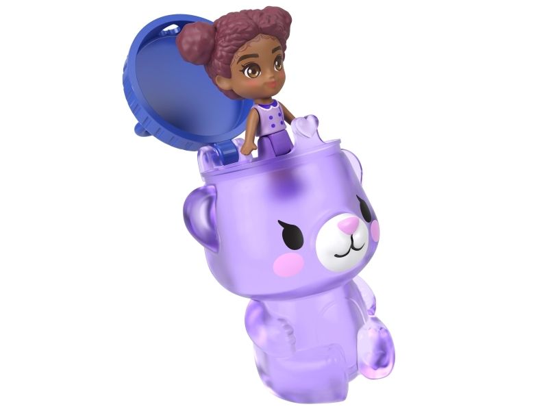 Åh, mine poter – en av de søte Polly Pocket Blueberry Besties på utsiden av kompaktet kan løfte armen for å mate den andre bjørnen! Åpne lekesettet for å oppdage et blåbærbjørn-inspirert eventyr! Hopp inn i leken med én mikrodukke og 8 tematilbehør, inkludert én bjørneunge. Ta en tur fra toppen av sirupsflasken! Sving i roterende stoler mens du spiser bær fra kjøleskapet som kan åpnes – det er så mye å gjøre! Når det er tid for å dra, pakk det sammen for moro på farten! Passer for barn fra 4 år og oppover, spesielt de som elsker å henge med sin bestevenn. Med forbehold om tilgjengelighet. Farger og dekorasjoner kan variere.
