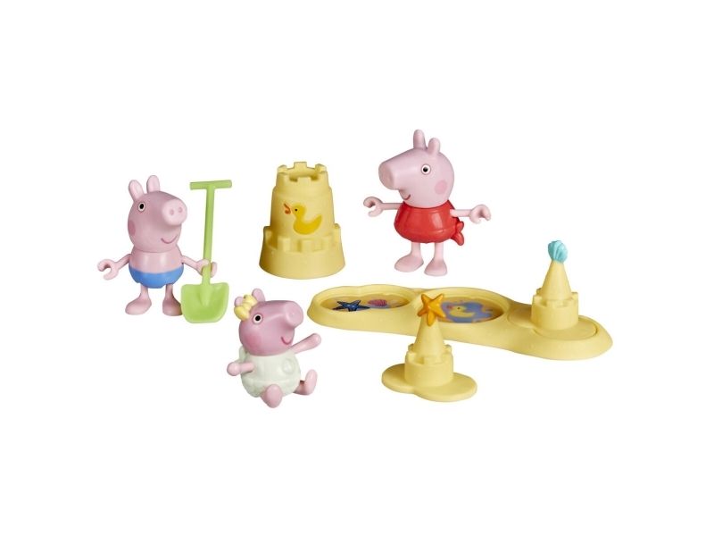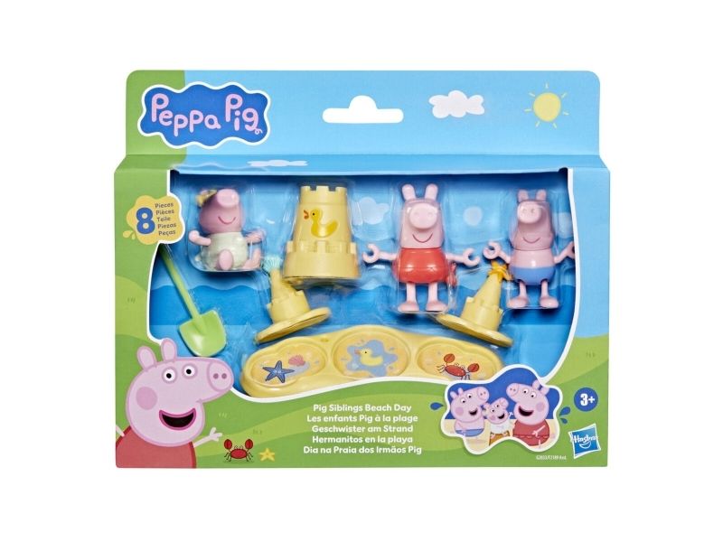 Det er på tide med sol og strandmoro med Pig Siblings Beach Day-lekesettet! Dette Peppa Gris-lekesettet med 8 deler kommer med 3 favorittkarakterer fra serien: Peppa, Georg og hennes lillesøster Evie, alle i badetøy! Små barn kan forestille seg å bygge sandslott med tilbehøret! Løft sandslottene for å avsløre 3 strandvenner. Inspirert av serien – disse lekene for jenter og gutter fra 3 år og oppover kommer garantert til å sette fart på fantasien til små griser! En morsom liten gave til barn som elsker serien. © 2025 ABD Ltd / Hasbro / HCPL Ltd. HASBRO og PEPPA PIG og alle tilhørende varemerker TM & © 2025 Hasbro / Hasbro Consumer Products Licensing Ltd. Peppa Pig © 2003 Astley Baker Davies Ltd. og HCPL Ltd.