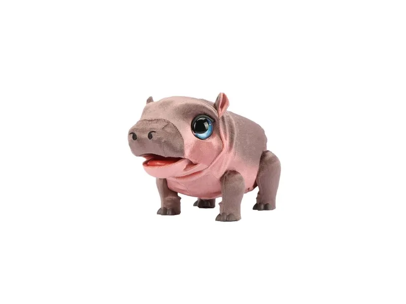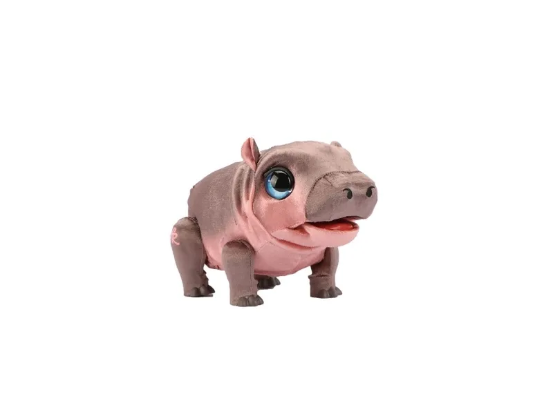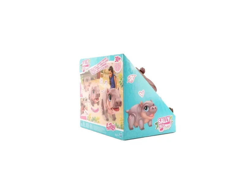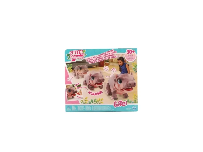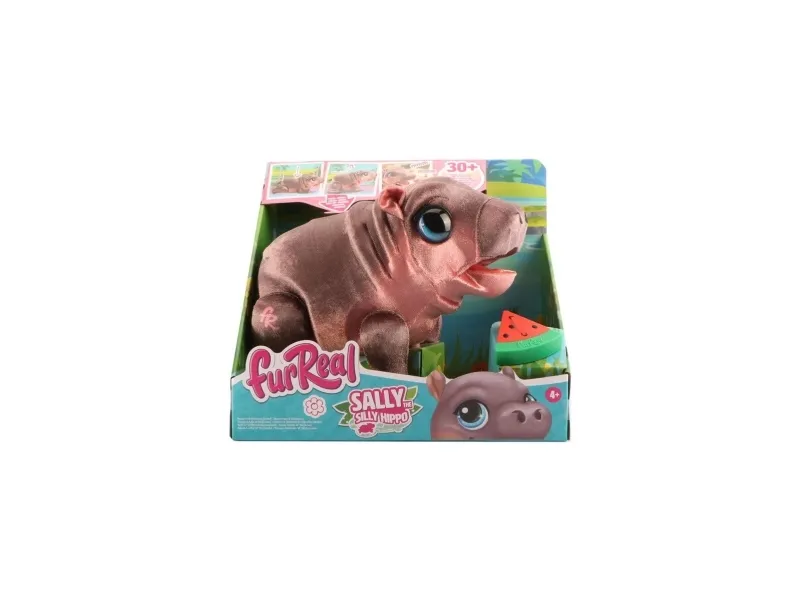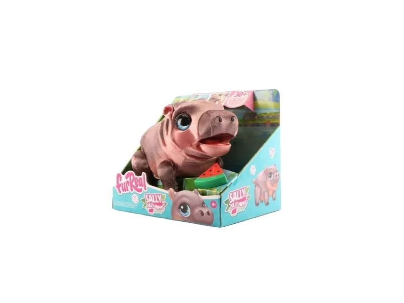 Get ready for mini-mayhem with the furReal Sally the Silly Hippo interactive toy. This sweet pygmy pet is just learning to walk and needs a friend to help her along. With over 30 different combinations of sound-and-motion reactions, this 23 cm animated toy is ready for fun. Slide the switch on her belly to ON and begin play. Give Sally her watermelon slice to hear her say cute phrases like “Mmmm!” and “Whoa!” She may lose her balance and fall, but don’t worry. She’ll get right back up to continue snacking! Press the middle of her back to help her practice her walking skills. Requires 4 x AA batteries (included). This adorable animated kids toy makes a sweet birthday gift, holiday present, or anytime surprise for animal lovers.