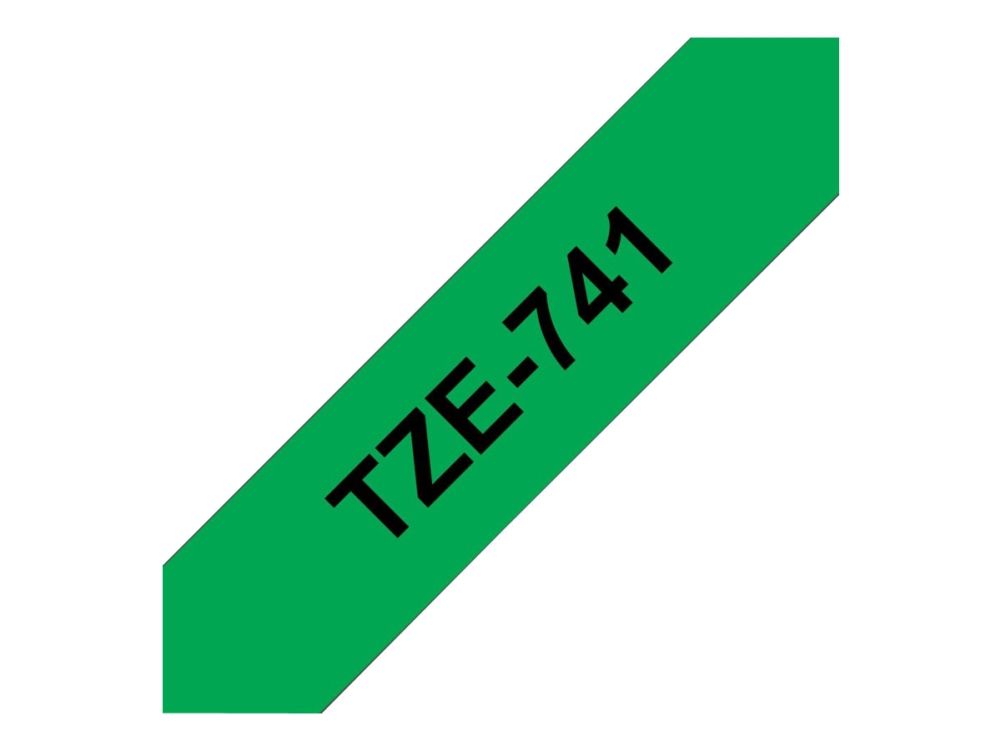 Brother TZe-741 - Standardklebemiddel - sort på grønt - Rull (1,8 cm x 8 m) 1 kassett(er) laminert teip - for Brother PT-D600; P-Touch PT-18, 3600, 750, D450, D800, E500, E550, H101, H500, P750, P900