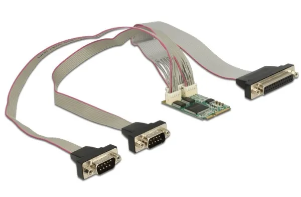 DeLock MiniPCIe I/O PCIe full størrelse 2 x Seriell RS-232 + 1 x Parallell - Adapter Parallell/Seriell - PCI Express 2.0 Mini-kort - RS-232 x 2 + parallell x 1 (95246)