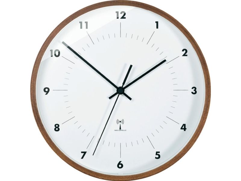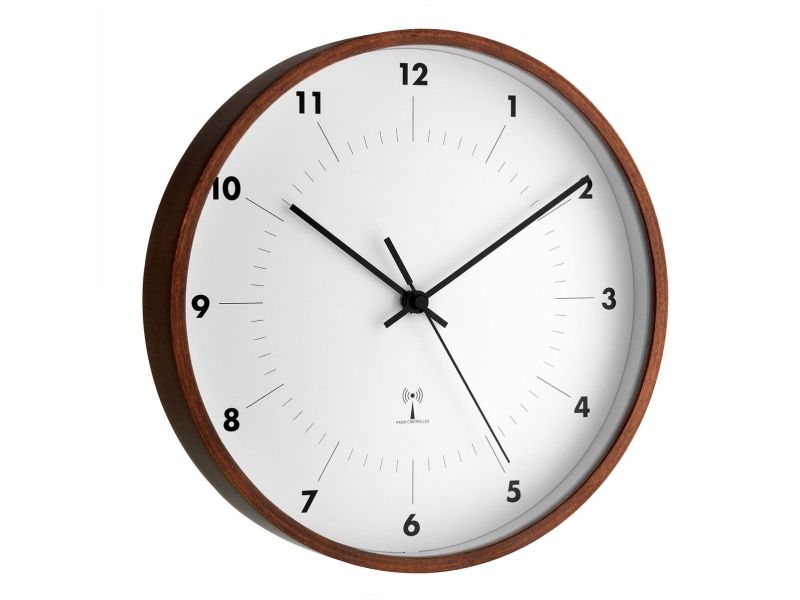 Moderne radiostyret vægur. Ramme med trækomponent.