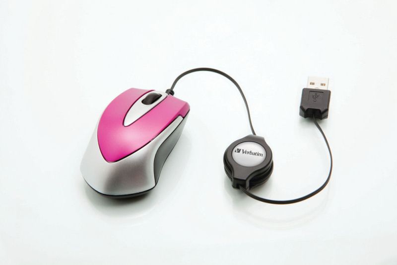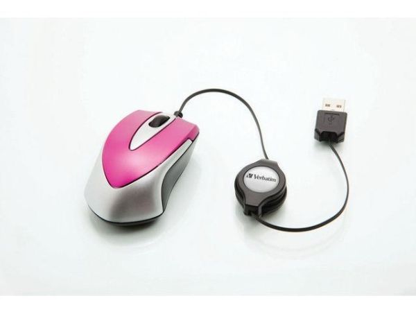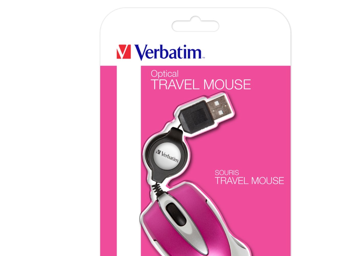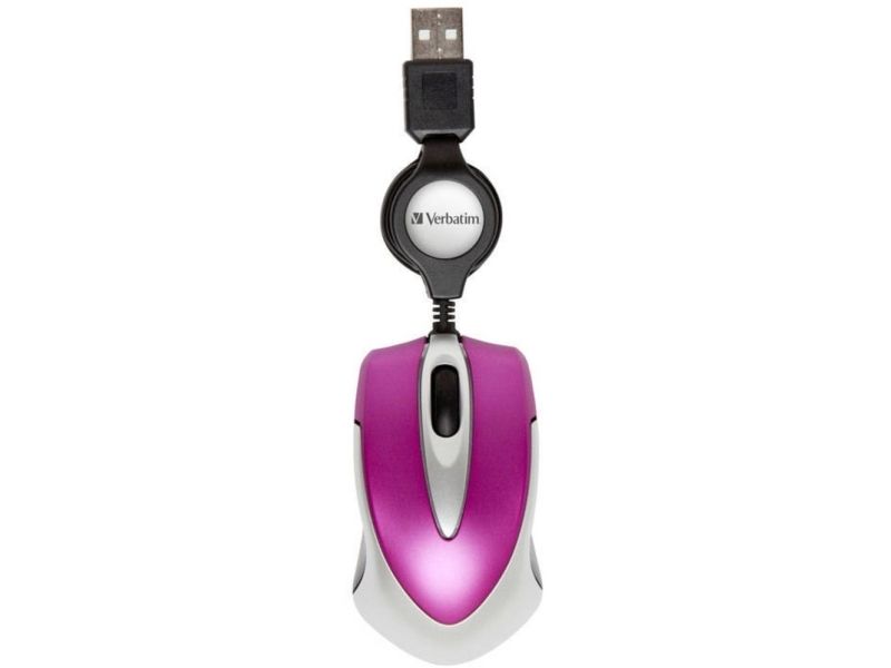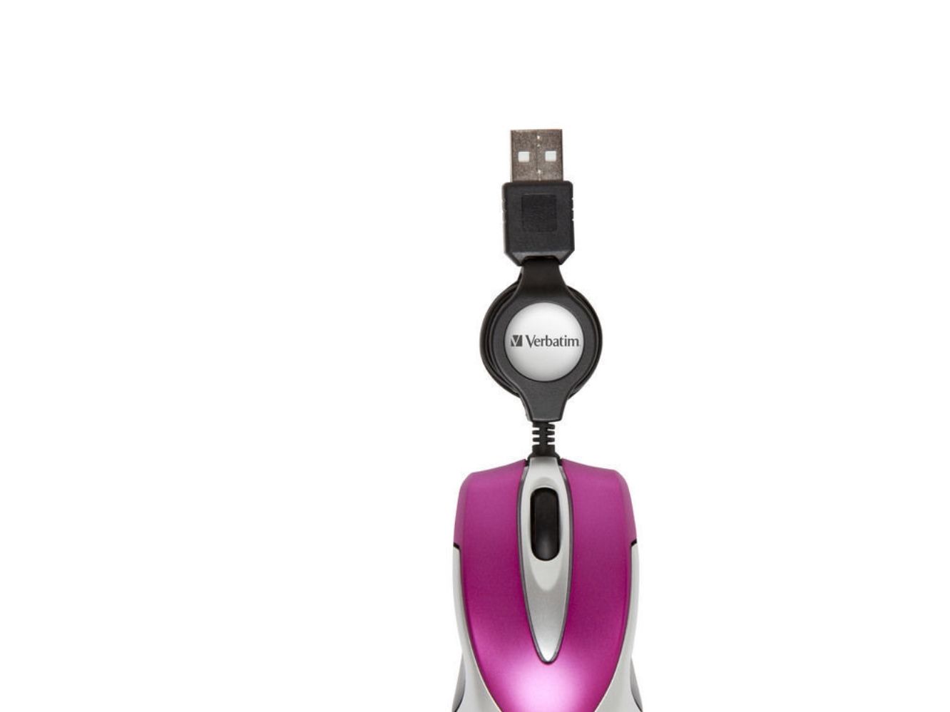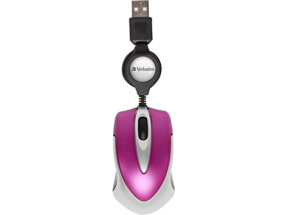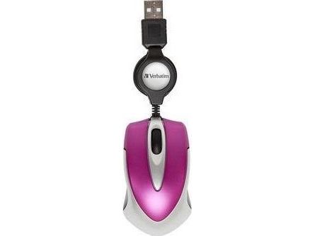 Verbatim Go Mini Optical Travel Mouse - Mus - høyre- og venstrehåndet - optisk - 3 knapper - kablet - USB - varm rosa