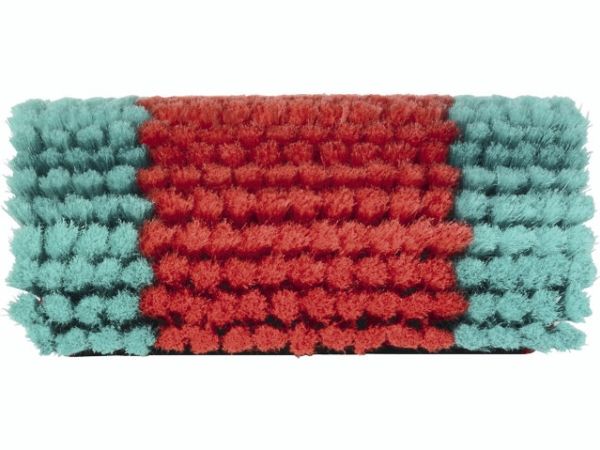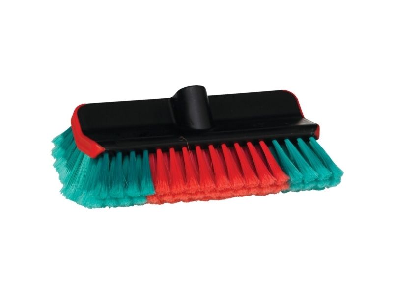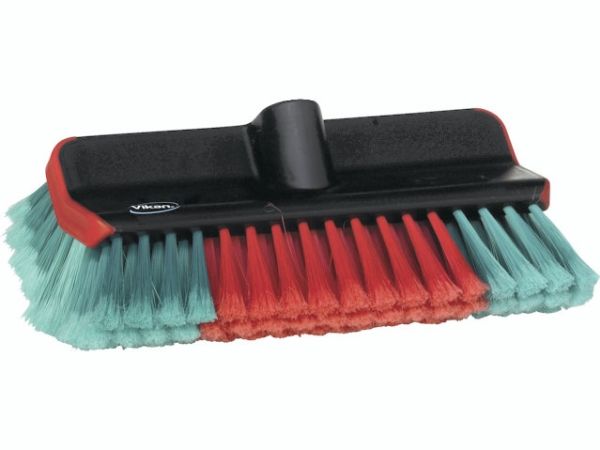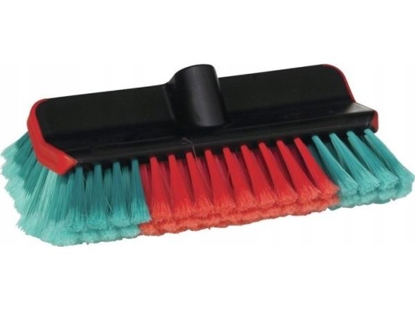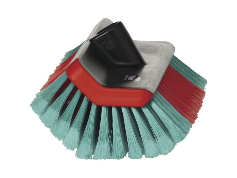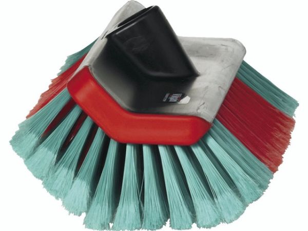 Autobørste med vandgennemløb. Børstens vinklede facon bevirker at filamenterne er i konstant kontakt med overfladen.