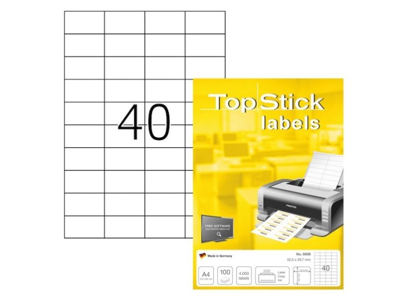 Etiketter TopStick 52,5x29,7 mm hvid - (100 ark x 40 stk.)
