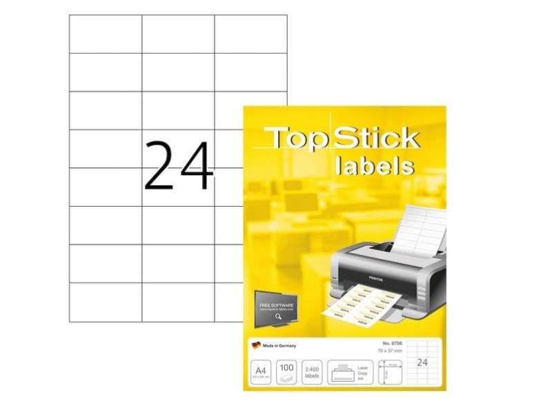 Etiketter TopStick 70x37 mm hvid - (100 ark x 24 stk.)