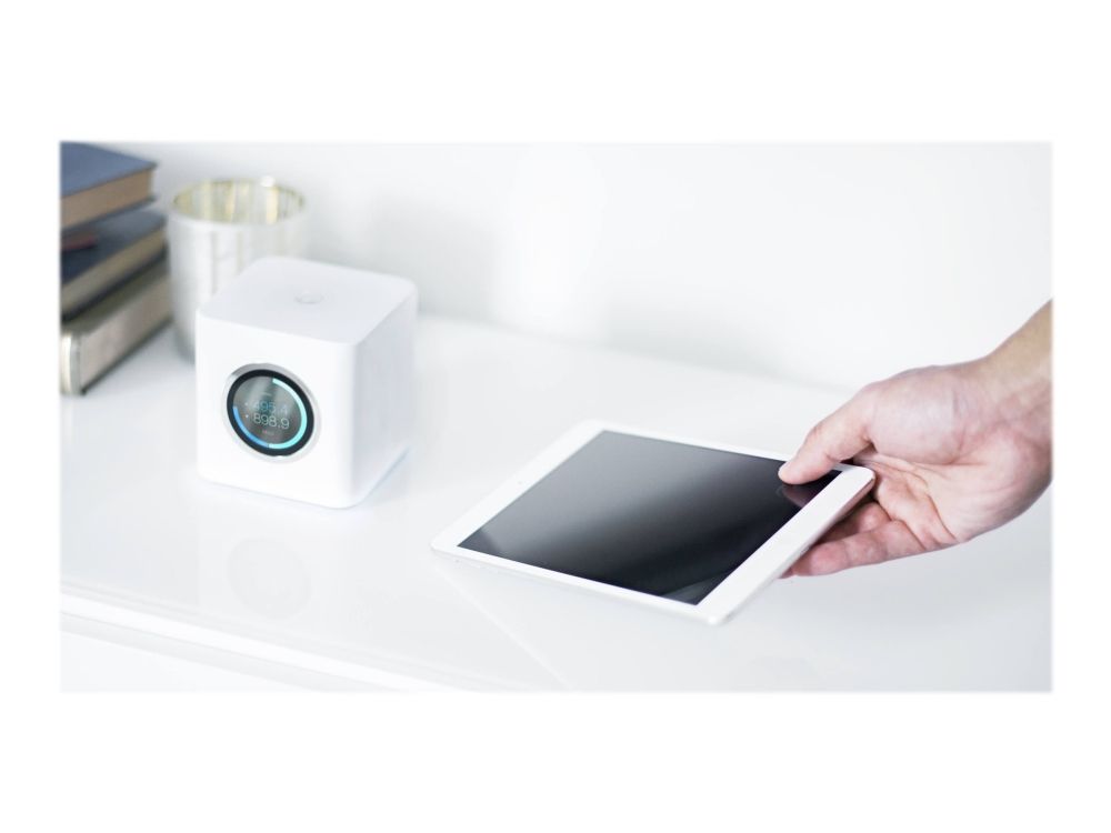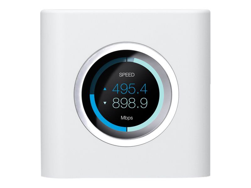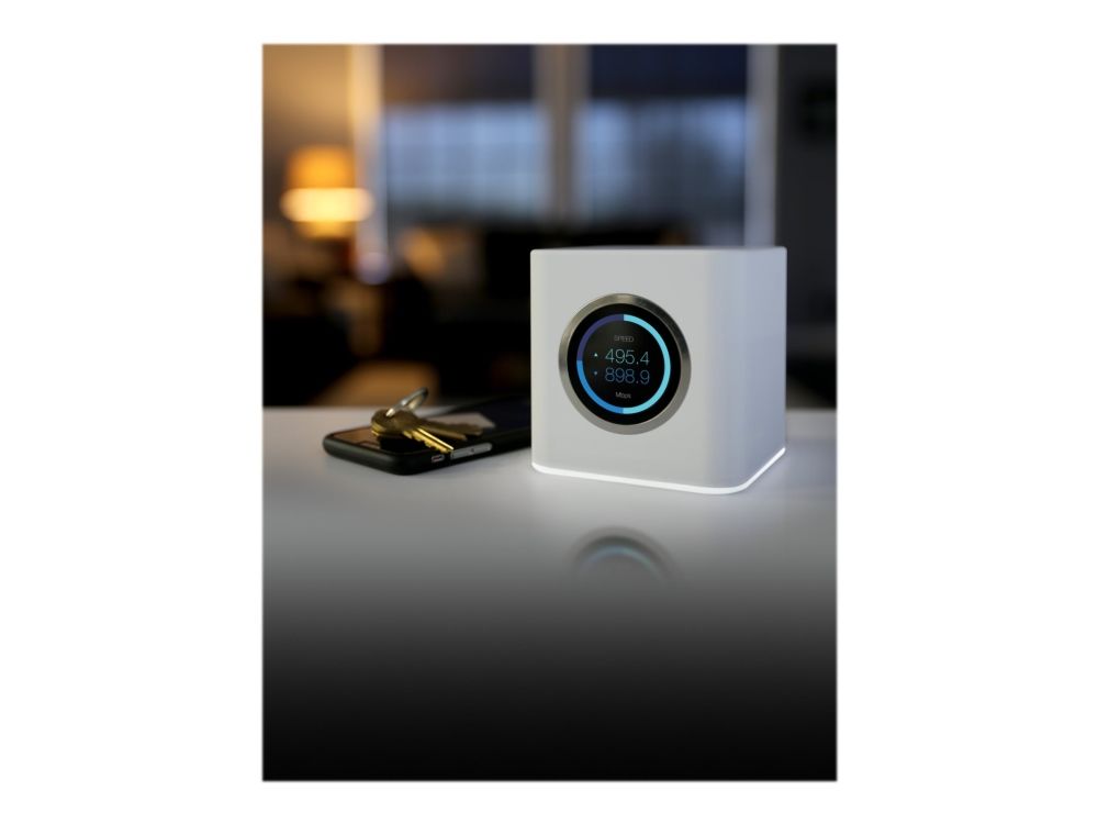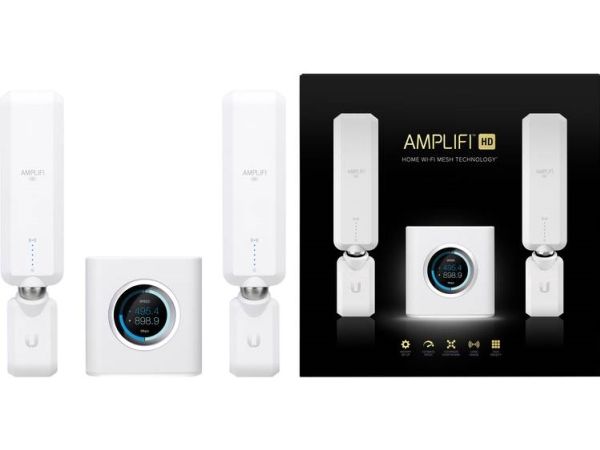 The AmpliFi™ HD (High Density) System includes a router base station and two wireless super meshpoints for maximum Wi-Fi coverage throughout your home. The HD Kit provides maximum wireless performance in an innovative and elegant design. The router includes a smart LCD screen and the mesh points display wireless signal performance. A mobile app is available for iOS and Android™ platforms for instant setup and easy management.