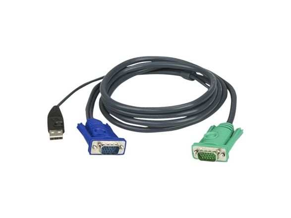 ATEN Micro-Lite 2L-5205U - Tastatur / video / musekabel (KVM) - USB, HD-15 (VGA) (hann) til 15 pin D-Sub (DB-15) (hunn) - for KVM on the NET CS1708, CS1716; Master View max CS-1716; MasterView USB KVM Switch CS-1708