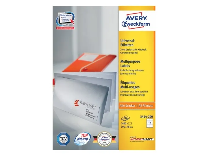 Do you work in a company in which there are many different types of printers and copiers? The universal labels are suitable for all standard printers and copiers. They are also all-purpose labels and can be used for various different applications. This means that whenever you need adhesive labels, you will always have the right labels for your particular purpose to hand. With Avery Zweckform's free-of-charge templates and software solutions, you can also design and print the labels really quickly and easily. You can save even more time if you print out your postal charges for your letters and packages yourself, tailored to the recipient address exactly: with STAMPIT, the franking software from Deutsche Post. STAMPIT contains Avery Zweckform label templates.