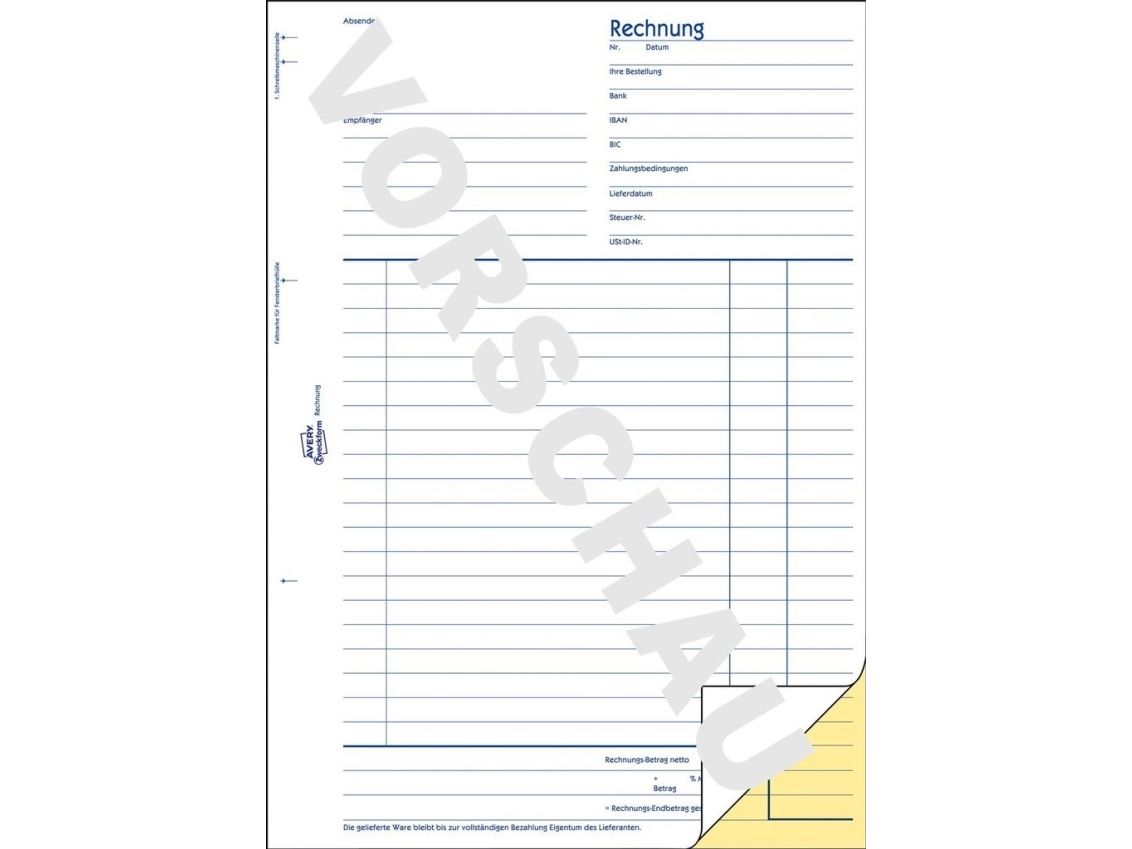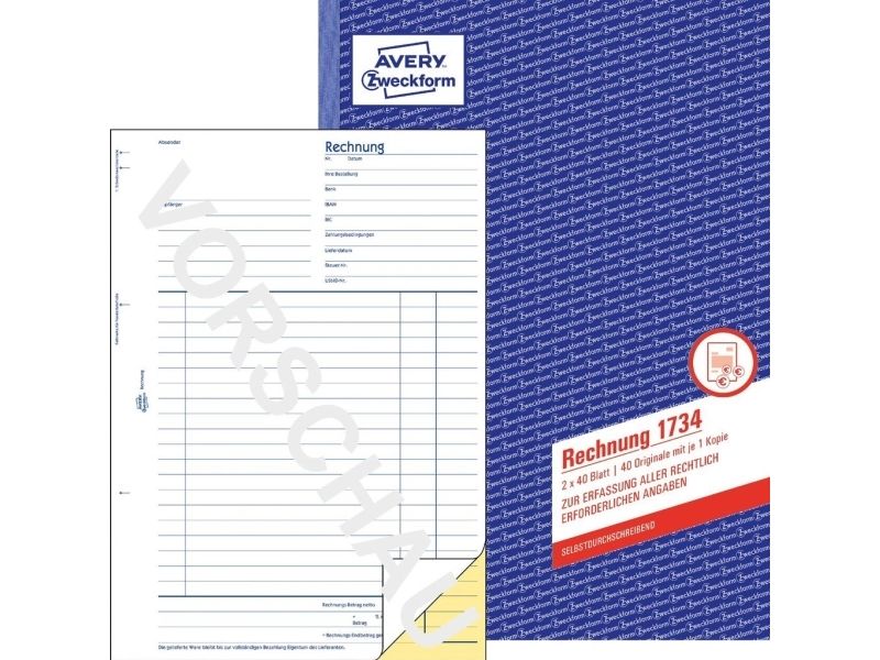 Avery Zweckform - Fakturaskjema - 40 ark - A4 (210 x 297 mm) - dublett - karbonfri