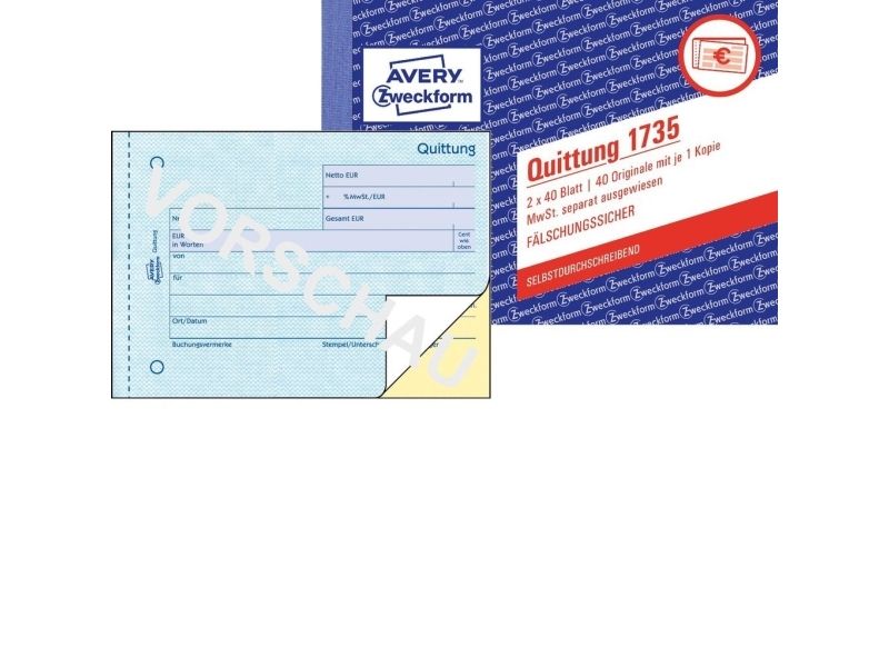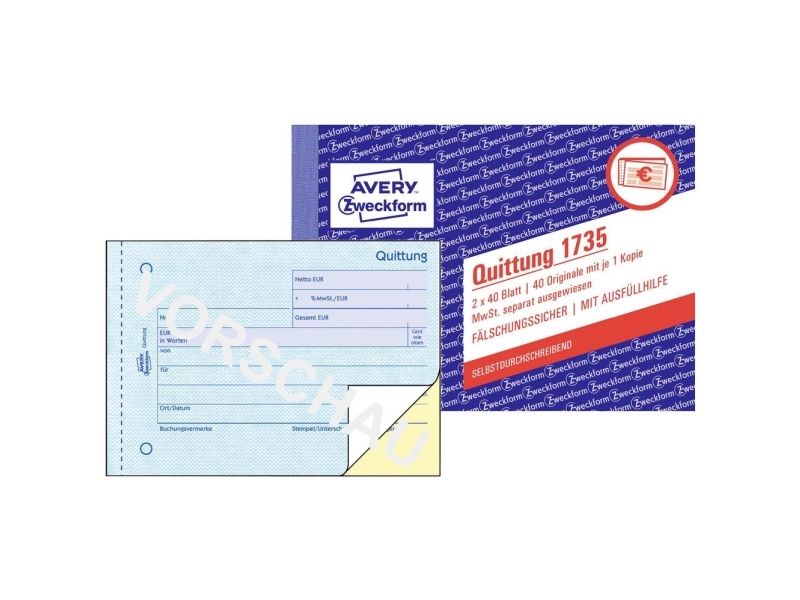 Avery Zweckform - Kvittering - 40 ark - A6 (105 x 148 mm) - dublett - karbonfri