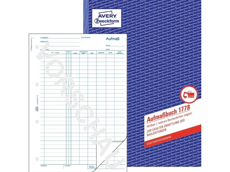 Avery Zweckform - Målebok - 50 ark - A4 (210 x 297 mm) - dublett - karbonfri