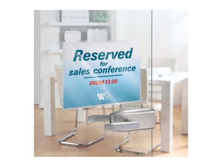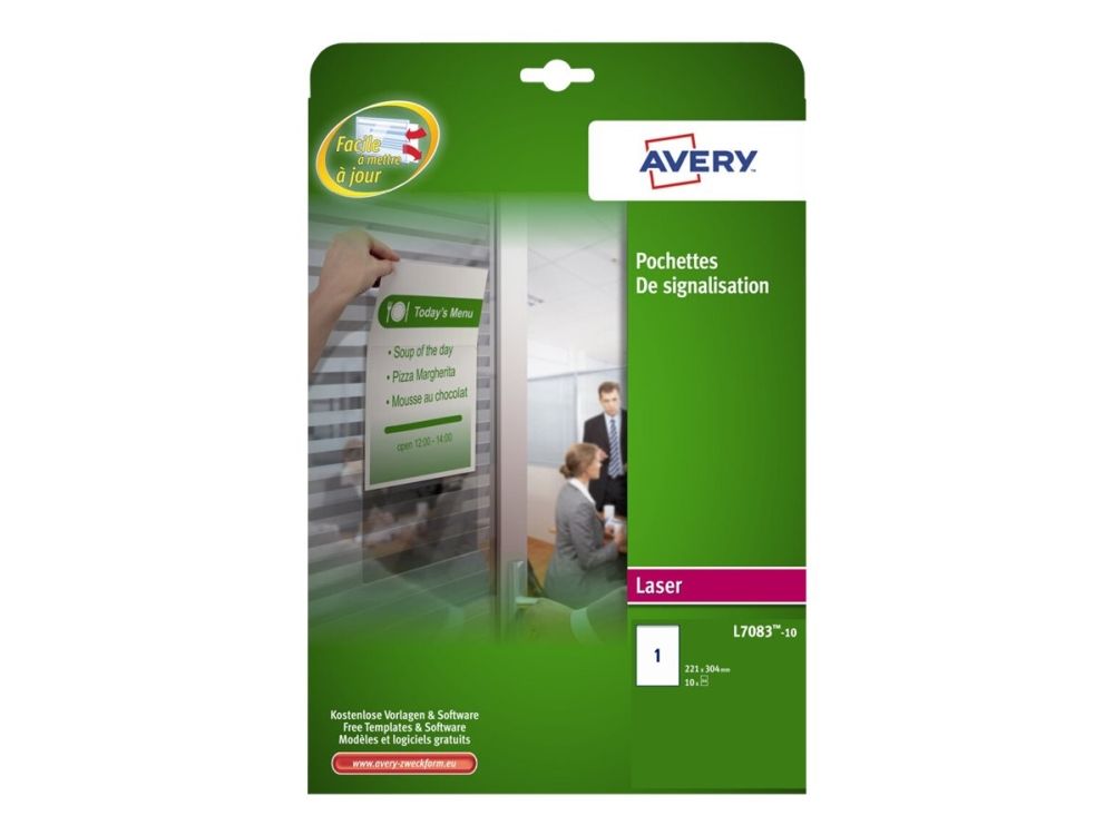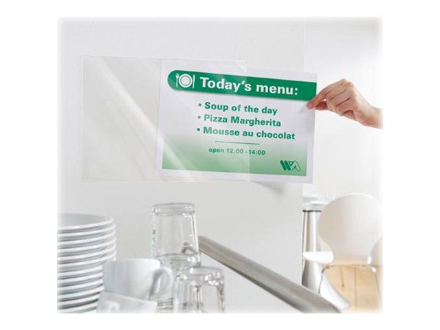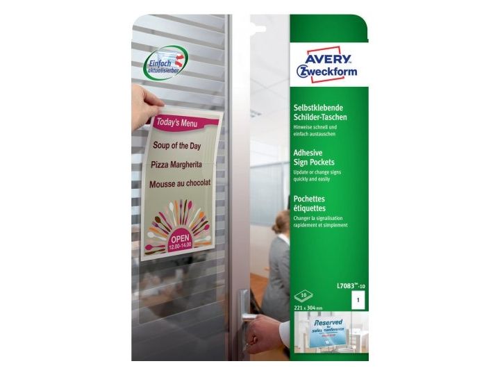 Do you have information that changes daily or frequently? This could be event information, menus or room reservations. What you need are these sign pockets which make it quick and easy for you to update your information. You simply print your sign on paper and slide it into the Avery Sign Pockets. Once the temporary sign is no longer needed simply remove it and replace with new a new one. The plastic sign holder is self adhesive and can stay attached to the wall or door to give a protective cover to your signs.