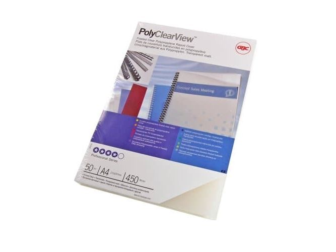 Made from tough, recyclable polypropylene, PolyClearView Binding Covers provide a durable semi-clear front to protect and enhance A4 document title pages. They are available in a choice of gauges and textured finishes to present a professional, stylish image every time and are spill and scratch resistant.