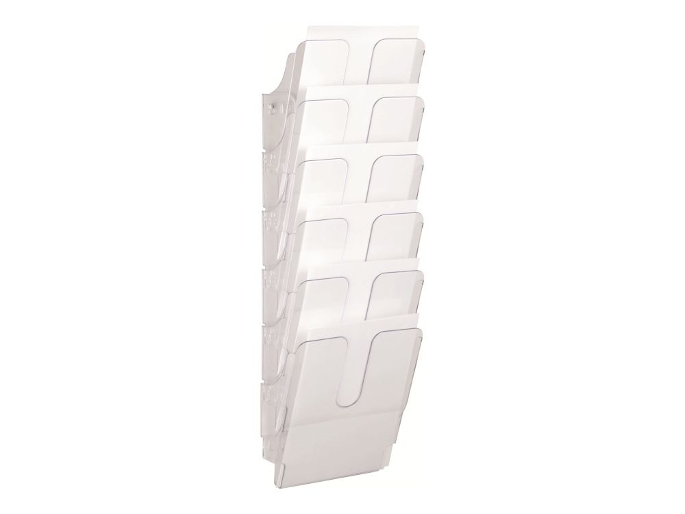 | • Brochureholder til vægmontering med 6 rum til informationer i A4-højformat • Kapacitet 23 mm • Kan udvides til en bæreevne på op til ca. 6 kg • Ideel til informationer ved receptionen, i udstillingslokaler, i venteværelser og på messer |