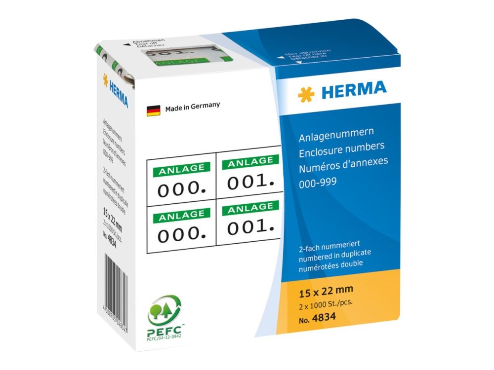 HERMA - Hvit, grønn - 15 x 22 mm 2000 etikett(er) (1000 ark x 2 selvklebende nummeretiketter