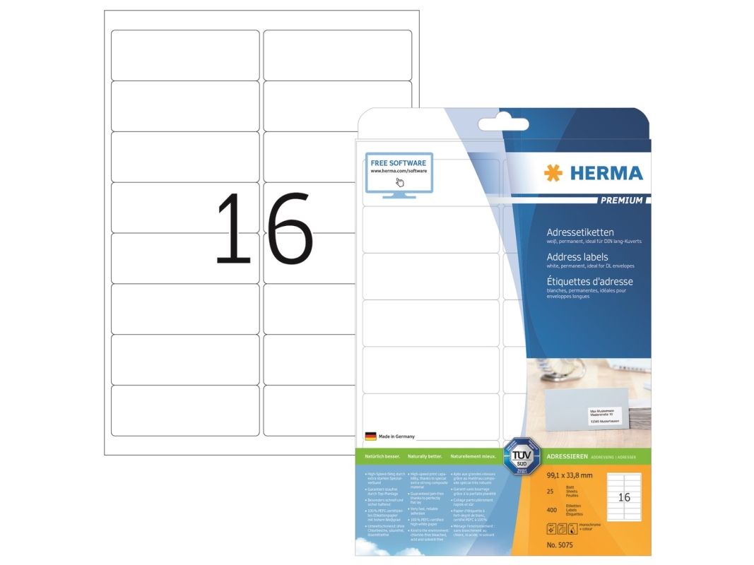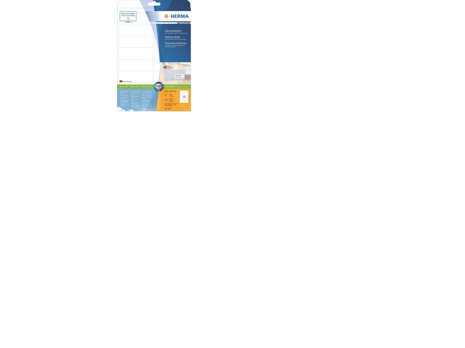 HERMA Premium - Papir - matt - permanent selv-adhesiv - hvit - 99.1 x 33.8 mm 400 etikett(er) (25 ark x 16 laminerte adresseetiketter