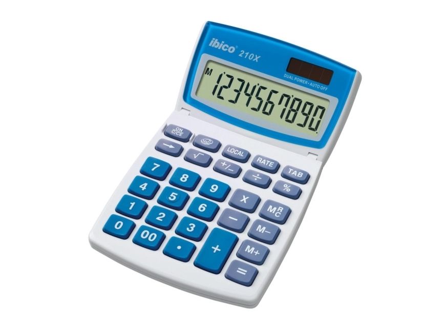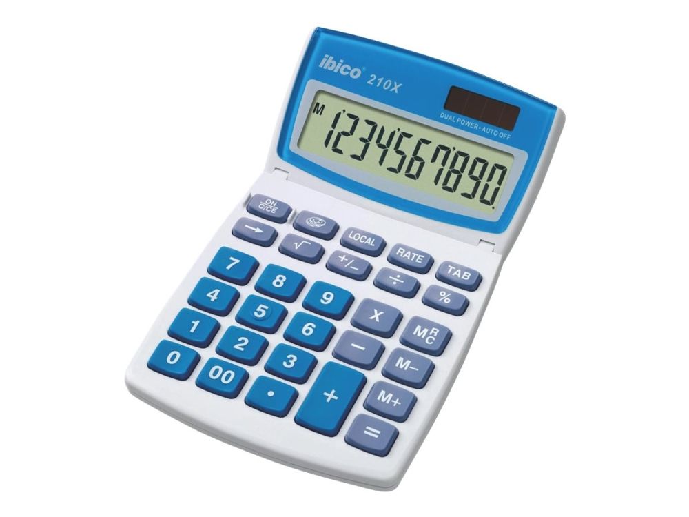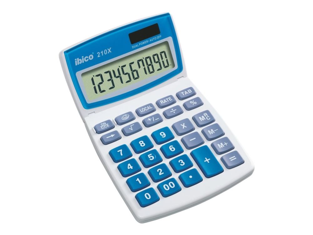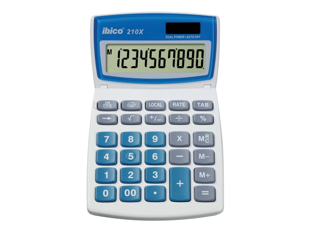 To compliment its highly visible 10 mm characters and full a 10-digit LCD display, the Ibico 210X calculator is equipped with comfortable large keys and an extra large + key, plus a handy three position tilting display.