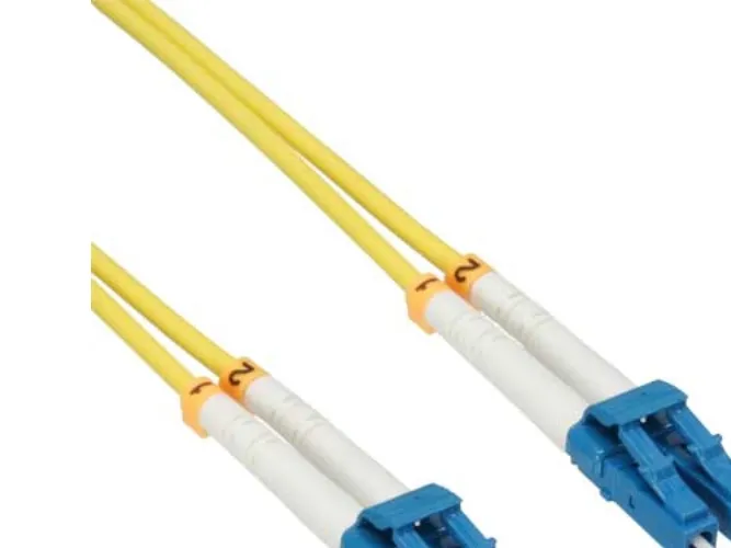 - Fiber optical duplex cable.\n- 2x LC plug to 2x LC plug.\n- Type: 9/125µm, OS2.\n- halogen free.