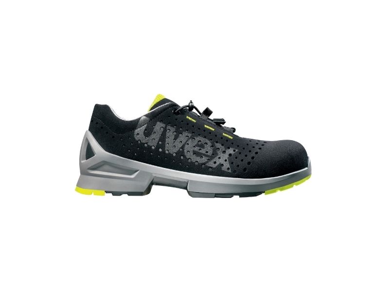 Sikkerhedssko 100 % metallfri uvex xenova® -tåkappe i aluminium af nyeste generation, kompakt design, anatomisk form, god sidestabilitet, ikke termisk ledningsevne, ikke magnetisk · Fremstillet med en ny listeteknologi for usædvanlig bærekomfort · Optimeret bærekomfort takket være uvex climazone teknologi · Åndbar, hullet hightech-mikroruskinds-overdel · Optimal ventilation takket være Distance Mesh formateriale · Egnet til kromallergikere, da den er lavet af syntetiske materialer · Kan tilpasses individuelt, elastisk snørring med snaplås · Næsten sømfri skaftkonstruktion for at undgå ubehag · Udtageligt komfort-indlægssål, antistatisk, med fugtigheds-transportsystem og derudover hæl- og forfodsdæmpning · Blød polstret krave og polstret tap · Særlig dobbelttættet polyuretansål med bedste dæmpningsegenskaber og meget god skridsikring, fri for stoffer, der kan ødelægge lakering, eksempelvis silikoner, blødgørere og så videre. · Overholder EMC-krav: Resistor < 35 megaohm. Sporty, multifunktionel sikkerhedssko Særligt letvægts og fleksibel