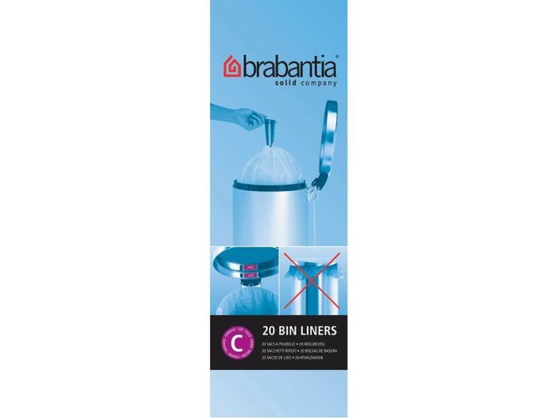 Brabantia Size C - Søppeldunkfôr - trekksnor - 12 L - høytetthetspolyetylen (LDPE) - hvit - pakke av 1 x 20