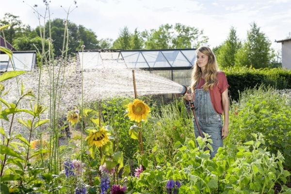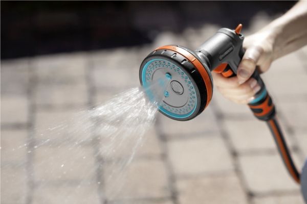 Convenient sprayer for various watering and cleaning tasks with five spraying patterns. The Gardena Comfort Multi Sprayer can perform all irrigation and cleaning tasks. Soft plastic components on the spray gun head provide protection against damage. If the water flow is to be continuous, you can lock the pulse trigger. Tiring of the hand is thereby prevented.