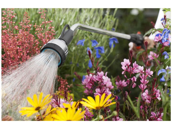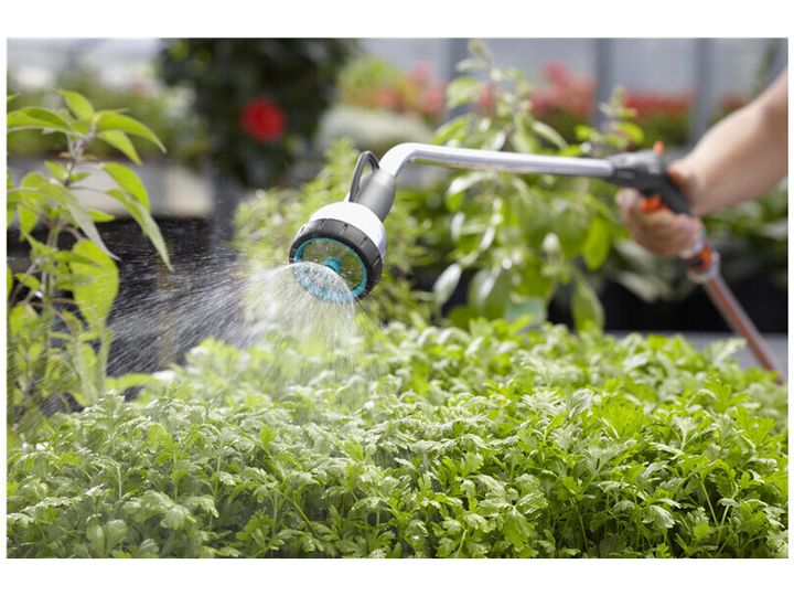 Vanningsdusj i metall for målrettet vanning og rengjøring på avstand. Gardena Premium langdusj er frostbestandig og egnet for vanning av større planteområder eller plantekasser og for rengjøring av avsidesliggende eller vanskelig tilgjengelige områder. Hvis vannstrømmen må være kontinuerlig, kan du låse pulsutløseren. Den forhindrer håndtretthet, og hengeren gjør den enkel og rask å oppbevare etter bruk. Dusjen måler 90 cm. og har tre innstillinger som er Fine Mist, Hard jet og Soft spray. Gardena gir 5 års garanti på denne Premium-dusjen.